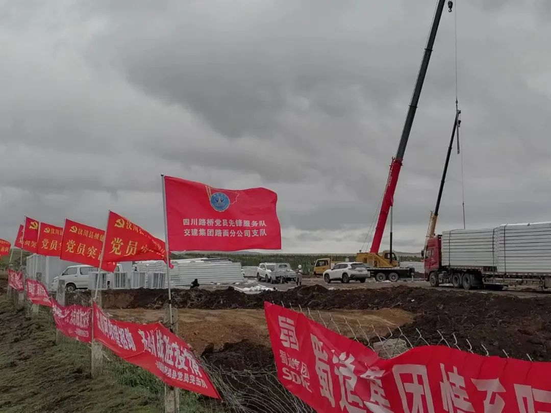 时值阿坝县静态管控期,整个县城按下了暂停键,援建建设者们面临着物流停滞、疫情防控压力大、任务重时间紧等难题。但抗疫就是使命,时间就是生命,交建集团的建设者们在上级领导下,不畏艰险、团结奋斗、奋勇向前,积极组织协调机械设备、材料、操作人员等支援方舱搭建。