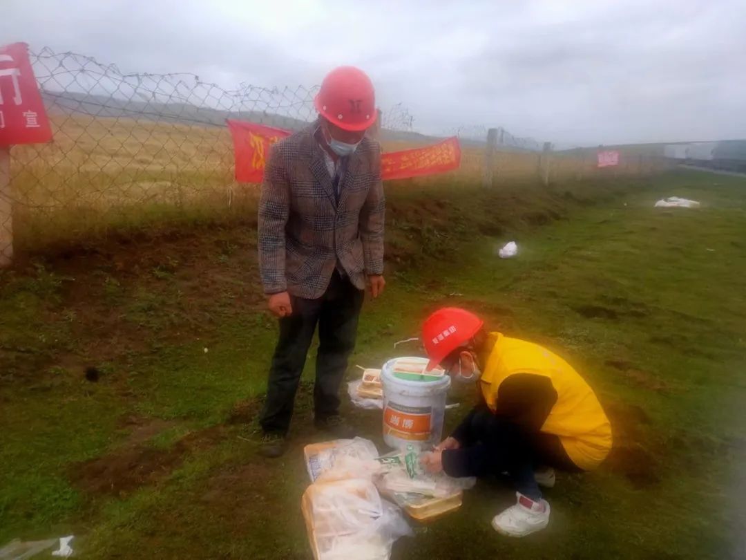 与此同时,双方快速在施工现场建立志愿服务阵地,主动为作业人员派餐,提醒大家分散就餐,做好个人防护,不要扎堆交谈,并在饭后清理现场白色垃圾,贴心服务建设现场作业人员,细心呵护草原生态。
