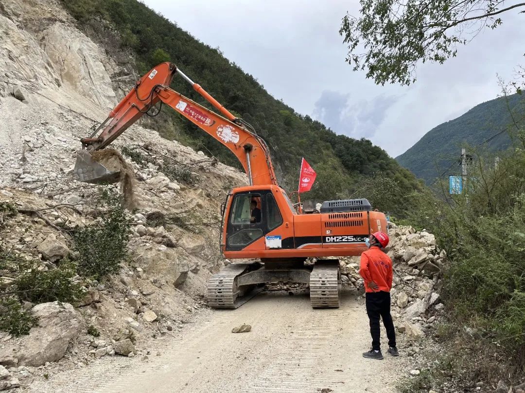 正当王海燕及突击队在抢通保畅作业的时候,突然之间,一侧的山坡上尘烟弥漫,落石沙土不断砸落。“又摇咯,又摇咯!大家赶紧撤离到安全位置!快快快!”余震发生时,王海燕总是一边观察者山体滑坡情况,一边有序的指挥着机械操作手向安全地段转移,待余震停止后,便又马上带人仔细观望四周,勘探山体及塌方情况,确认暂无危险,便又开始抢通工作。“现在想起来都后怕,好多大石头从我们身边砸下来,估计个个都有上百斤重哦!莫的法,我是总调度,更是一名共产党员,肯定要冲在前面!”回忆起当天惊心一幕的时候,王海燕心有余悸,而这样的余震场景,在抢通保畅作业过程中却时有发生。经过六天的奋战,王海燕和突击队已经完成了多个点位的抢通保畅任务,白天他主要负责现场指挥调度,晚上整理总结并将次日工作计划落实给每一位工长、操作手。原计划中秋回家探望近一年未见的父母及妻儿因抢险任务而又无限期延迟,王海燕略微有些失落,但当他看到灾区群众的困境,此刻只有尽快让群众早日回家的念头。他又来到省道 217 线湾东村堰塞湖抢险区域,他将和其他更多的路桥铁军继续战斗,负责完成永久性人行钢栈桥和一座临时车行桥的建设工作,让更多的群众方便通行。