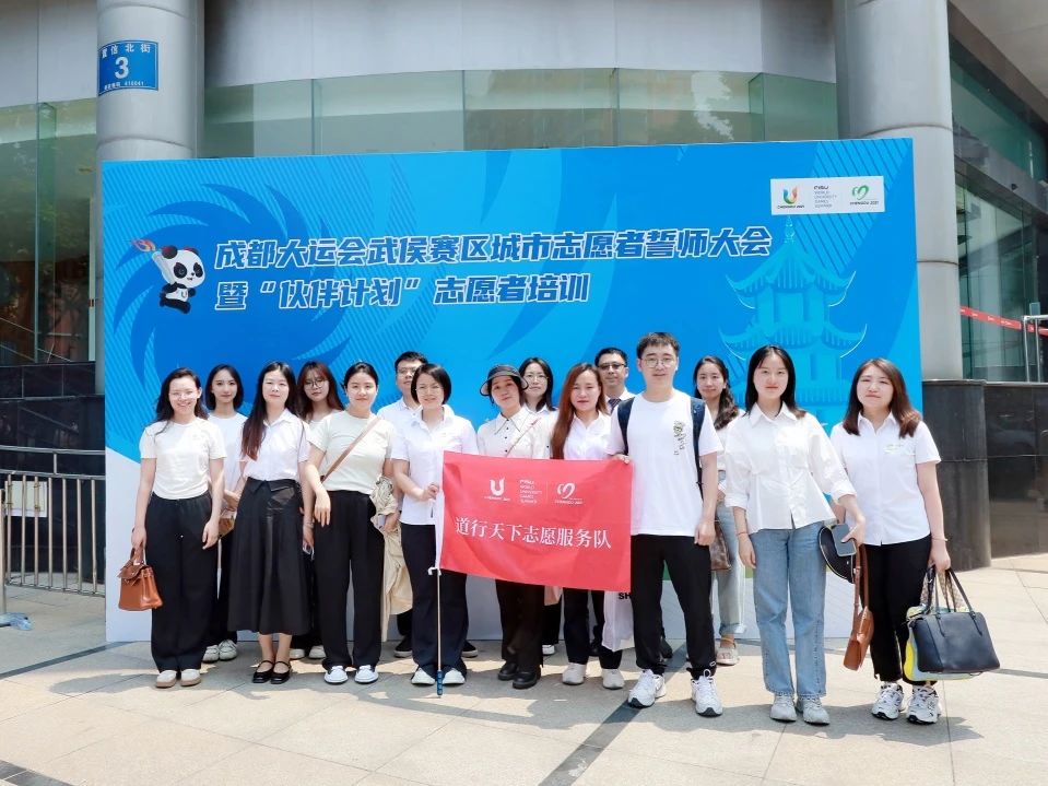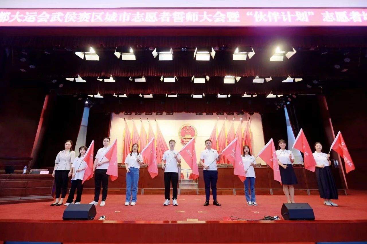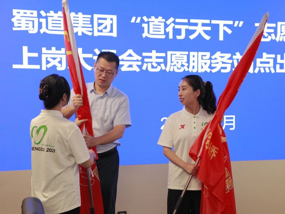 成都大运会武侯赛区执委会组织开展了城市志愿服务誓师大会,公司10名志愿服务队代表参加了誓师大会,现场为“道行天下”志愿服务队授旗。誓师大会结束后,还进行了“新时代国情省情市情”课程志愿者培训,让城市志愿者进一步提升城市宣传能力,更好地讲好成都故事、传递成都声音,为助力赛事名城建设贡献青春力量。